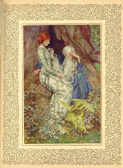 Selon une des nombreuses variantes de la légende, Viviane succomba aux charmes de Merlin et lui demanda de lui enseigner ses secrets.